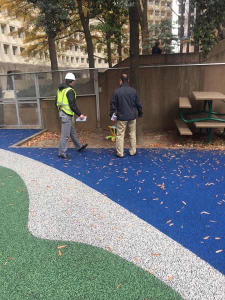 This project for the John F. Kennedy Center for the Performing Arts was multifaceted and consisted of the installation of Wayfinding in Garage Level A. The work included the preparation and painting of elevator lobby walls and columns with new wayfinding and life safety graphics, preparation and installation of ‘trailblazing’ walk path on the parking deck slab, cosmetic concrete repairs and patching on columns and the preparation and painting of all columns in a color coded manner with section identification graphics, life safety graphics, and telephone graphics.